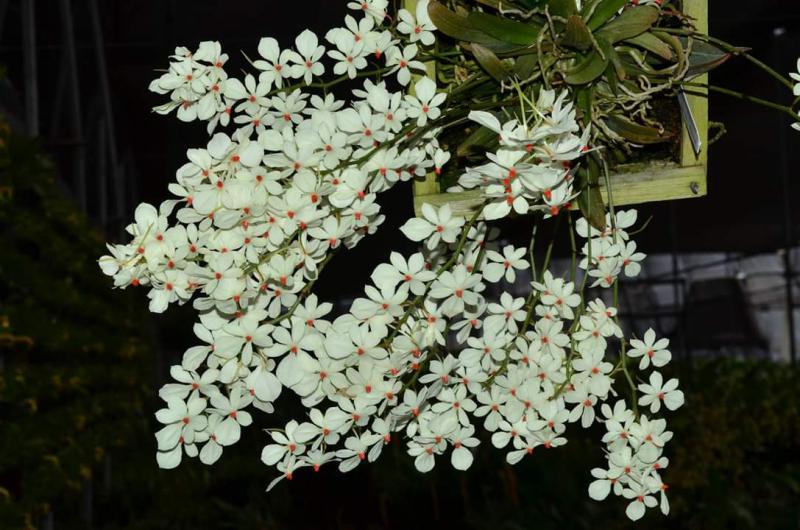Aerangis обычно выпускает 2–3 свисающих цветоноса, длина которых может достигать 38 см. Цветоносы вырастают из пазух нижних листьев.