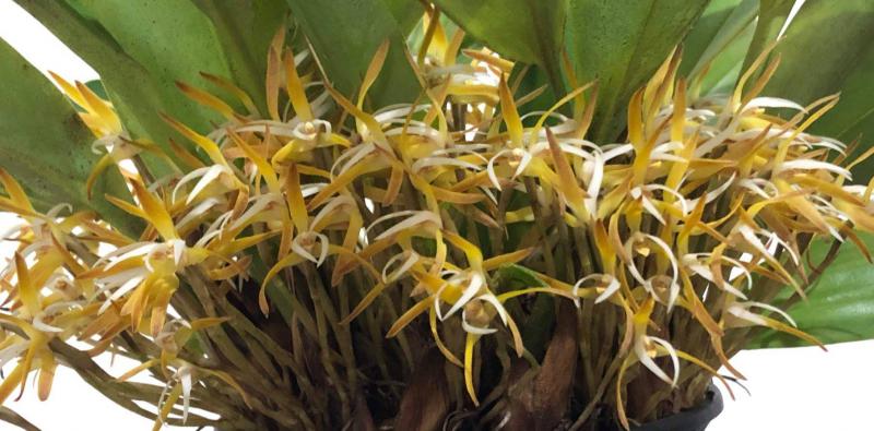 Эквадорский тип - и псевдобульбы, и листья 40 см длиной, цветы крупнее, на один цветонос приходится всего лишь от 2 до 4 цветков.