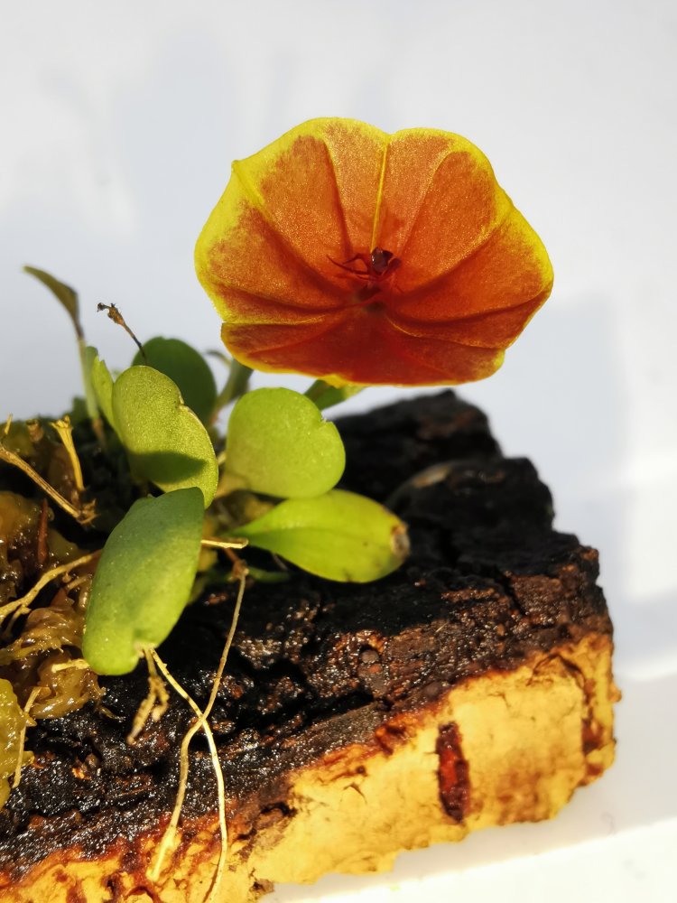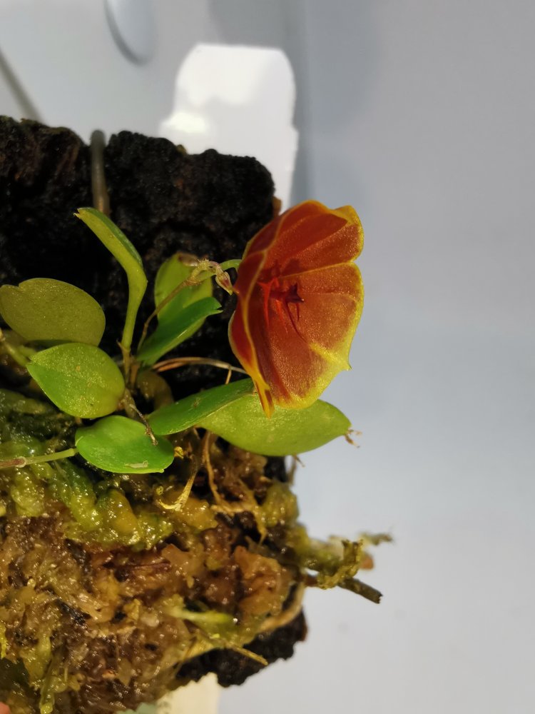 В последней поставке пришел изумительного качества Lepanthes telipogoniflora, c живым цветоносом. Быстро адаптировался, вырастил бутон и зацвёл. Цветок необычайной красоты, не совсем стандартный — у него довольно широкая жёлтая каемочка по краю.