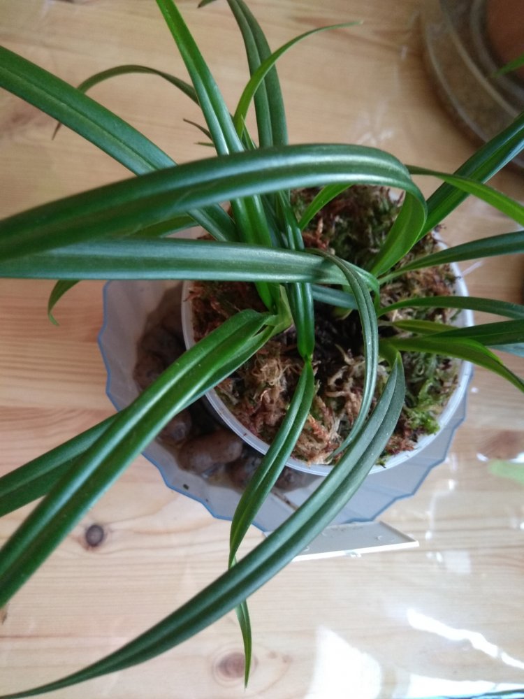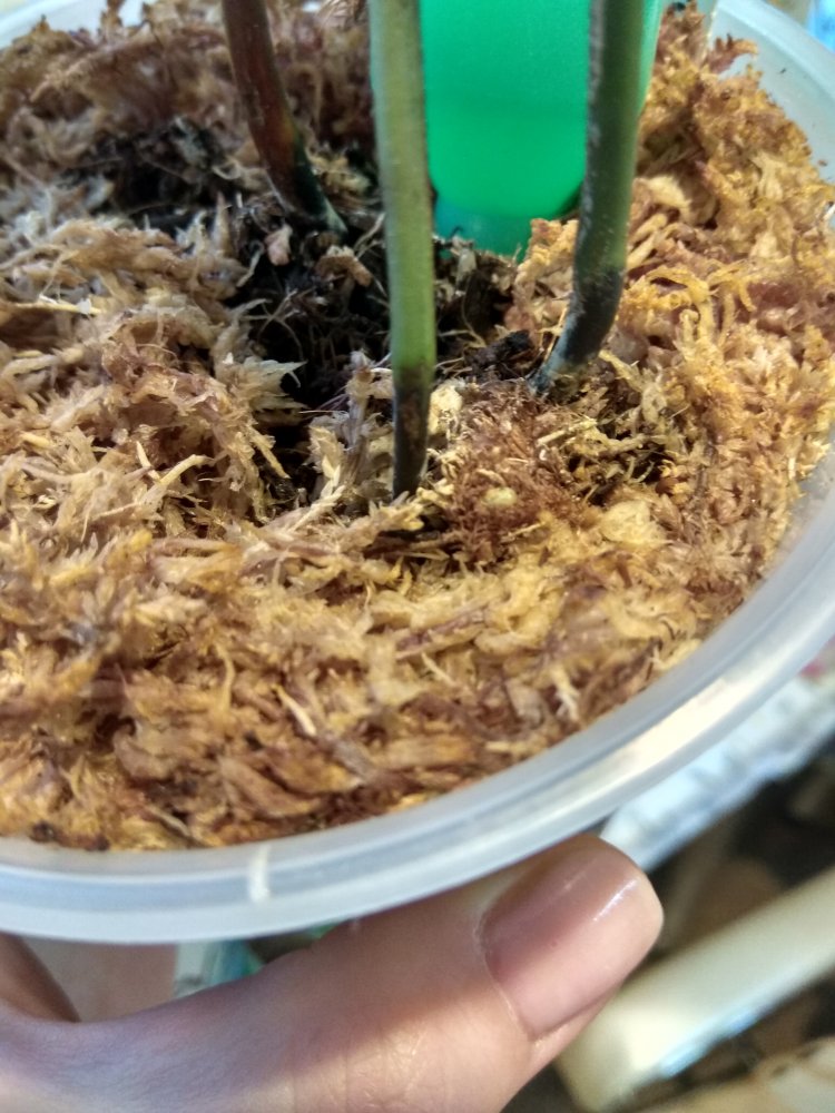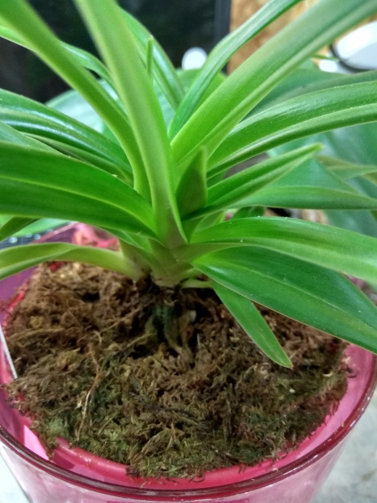 Маленькая радость - в горшке появились признаки жизни ) Отозвался на влажный мох в горшке и пониженную температуру содержания (18-22), но одну вайю из 3-х всё же успел отсушить (при более высокой температуре).