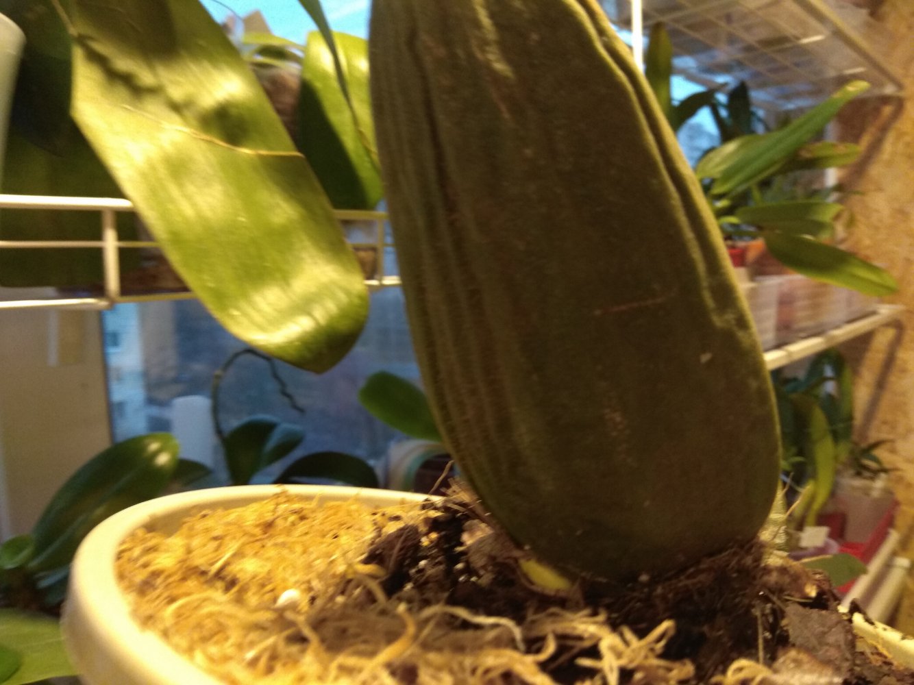 Вениамина давно не фотографировала ) Вениамин растёт быстро, а "зеленая штучка" - очень медленно, к середине февраля, наверное, будет сантиметра 1,5. Уже совершенно точно понятно, что это не рост, но мне казалось, что цветонос у ангулоа должен быть как-то внушительнее, а тут, прям, сосновая иголочка ) но всё таки растёт, тьфу-тьфу-тьфу )