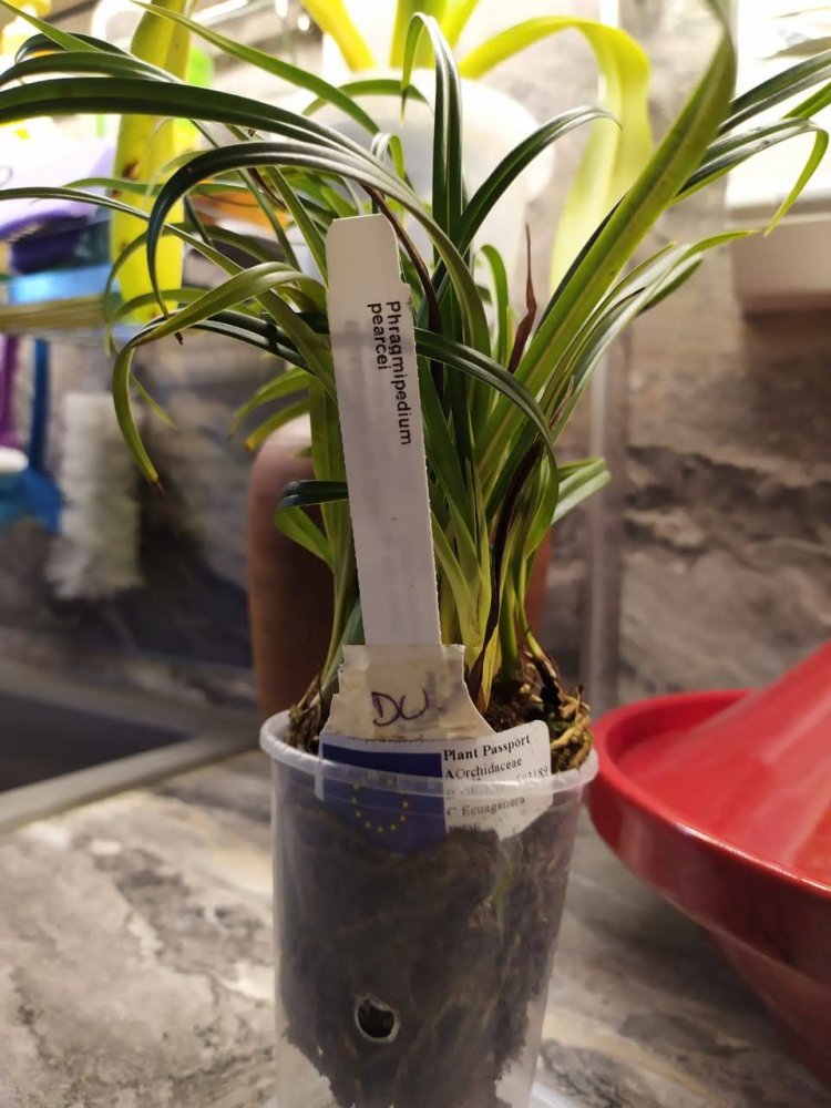 Цветением похвастаться не могу, но имя поставщика на главной напомнило, что хотела сделать фото прогресса phragmipedium pearcei, полученного в августе 2020. Первые две фото от августа, сделаны в день получения, последняя - сегодня.