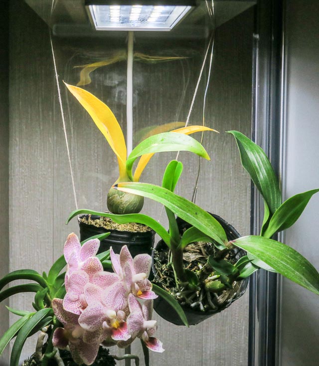 У меня орхи растут в аквариумах. В большом установлено 2 лампы по 40Ватт Flora-Glo производство компании Hagen.