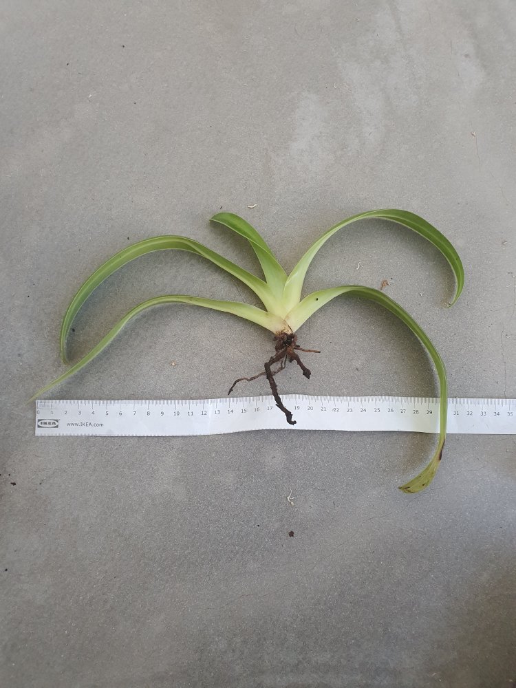 Хочу поделиться успешным опытом выхаживания доходяги сандерианума. Приехал уже скоро как год назад вырванный из горшка, практически без корней. Всё здоровые корни остались в горшке, а те что были на растении были поломанные, сухие и пожухлые, точек роста никаких не наболюдалось. Заявлен был как семилетка, но для такого возраста он выглядел реально как доходяга, я думал у меня с ним ничего не получится. А заплатил я за него немало, 500 баксов австралийских, конечно же было очень жалко, тем более это был мой первый сандерианум.
