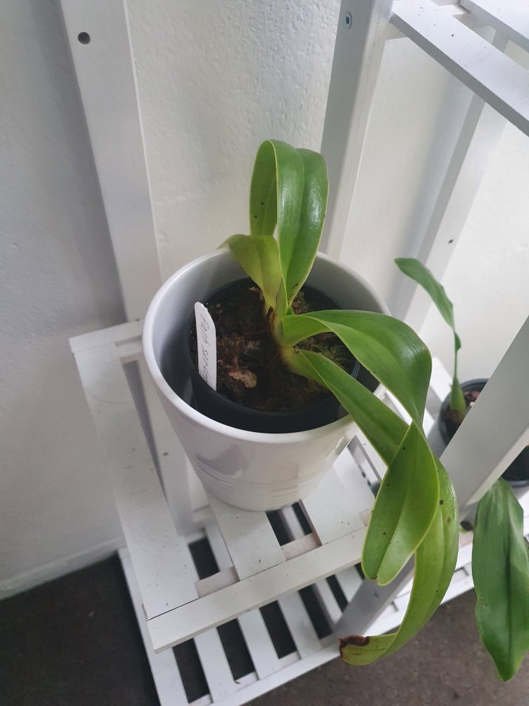 Однако я не стал паниковать, никаких реанимационных процедур не делал, лишь аккуратно посадил и закрепил в смесь из коры, угля, ракушечника и сфагнума, и просто забыл о его существовании. Где-то около месяца назад появился новый здоровый лист, и очень медленно (что свойственно этому виду) растёт.