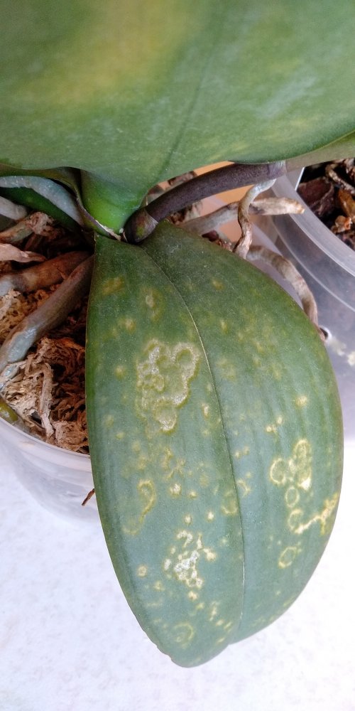 На одной из орхидей появилось вот такое пятно. Как думаете это вирус или клещ.