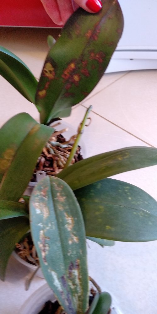 опасение вызывает только Phal. cornu-cervi. Он пришел жирный, с цветоносом НО имеет много черных точек, которые местами сливаются в черные пятна (на фото видно). Эти очаги сухие, на молодых листьях только с внешней стороны, на старых листьях чернота и сверху и снизу. ХЕЛП, коллеги!!! чего с ним делать? пока поставил отдельно от других для наблюдения.