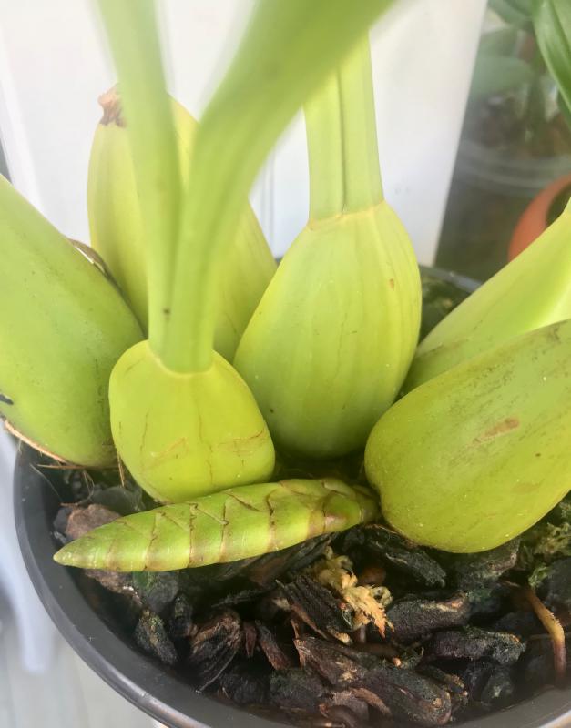 Вот-вот расцветет моя третья попытка завести у себя Россиоглоссум гранде либо гибрид с ним. Первые два видовые Россиоглоссума гранде от разных поставщиков у меня не прижились и отправились в орхорай практически сразу после получения. Это третий - Rossioglossum Rawdon Jester (гибрид Гранде и Вильямса) из прошлогоднего спецпредложения от Карге. Получен был тоже в состоянии "не ахти", была уже в прошлом году рада, что он реанимировался и не помер. О цветении в этом году даже и не мечтала...