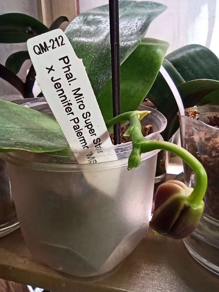 Начал открыватьсяP. Miro Super Star x Jenifer Palermo qm 212, спец 41082. Получила с конце декабря 2020 с обрезанным цветоносом. Быстренько проснулся и стал донашивать цветонос. Фото к спецу было преложено только Miro Super Star, без кросса. Жду с волнением раскрытия, интересно, что получилось.