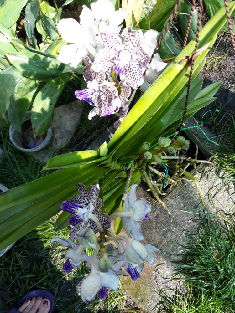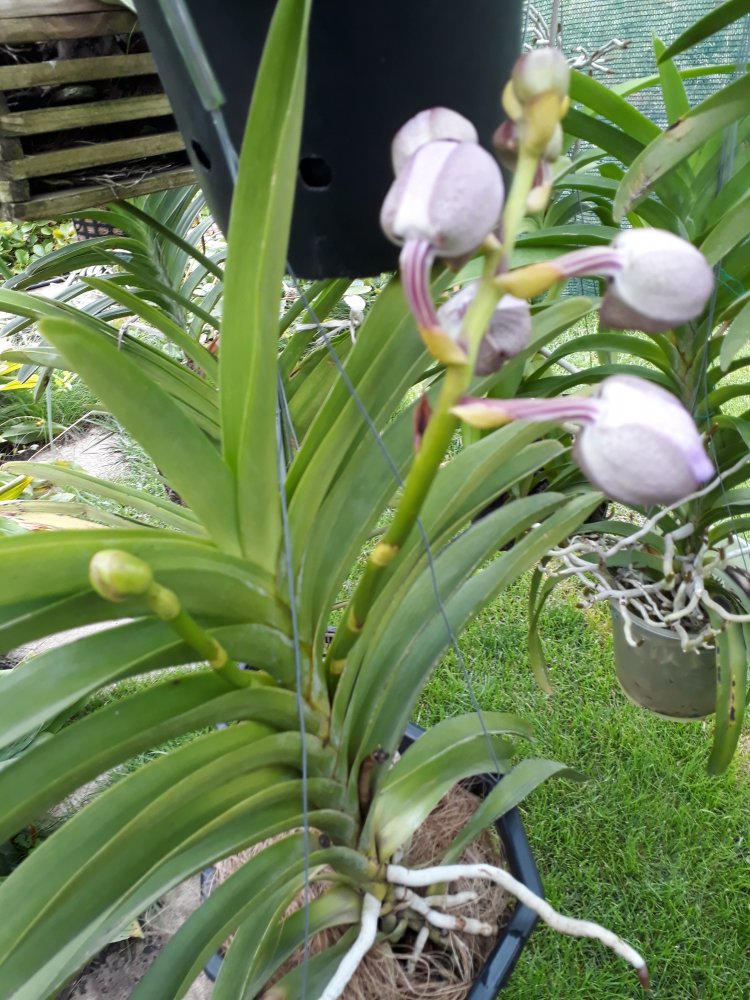 и вот, с двумя уветоносами, к сожалению, потеряла название.Ого-го!!Красота-то какая!Десять дней провела на турбазе, приехала, и много ванд порадовали своими бутонами. Покажу некоторые:Посмотреть вложение 251776Ринхостилис Bangcok Sunset, такой долгожданный, выдал сразу два цветоноса. Как хочется поскорее увидеть, будет яркий или бледный? Можно принимать ставкиПосмотреть вложение 251777v. Lamelata×Mimi Palmer-как и в прошлом году, три цветоноса, надеюсь на букетное цветение. Она ароматная , просто барбариска!Посмотреть вложение 251778Rnst. Bangkok Beauty, получен от Пачары в прошлом году, цветение второе, у меня-первое.Посмотреть вложение 251779v. Somsry Delight×Fuchs Delight-эта уже неоднократно цветшая,Посмотреть вложение 251780и вот, с двумя уветоносами, к сожалению, потеряла название.