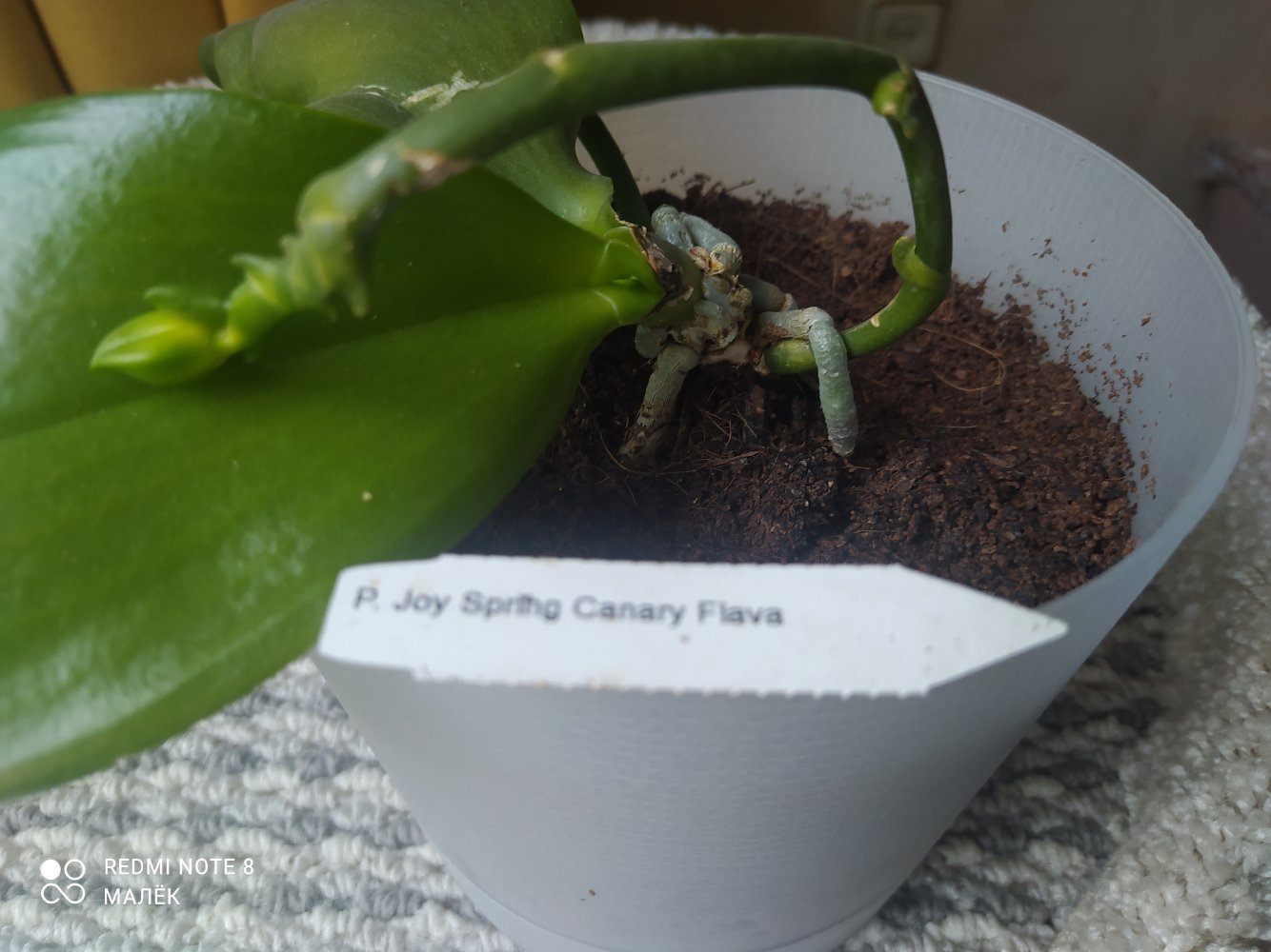 Осенью купила один фаленопсис и взяла к нему довеском Канарейку флаву. Очень корявую.