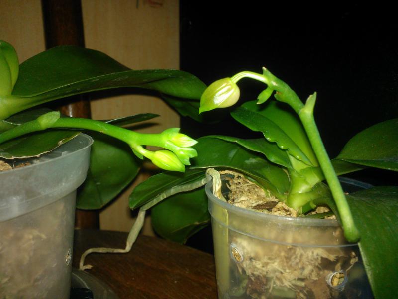Phal. Penang Girl (справа) пытается поговорить с P. Yungho Gelb Canary x P. Ld's Bear Queen (слева)