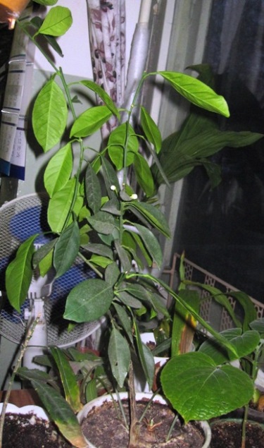 И заодно - апельсинчик, покупал как Вашингтон навел. Три года меня динамил. Цитрусовые вообще меня не любят, так что радости не меньше, чем от зацветающей ликасты.