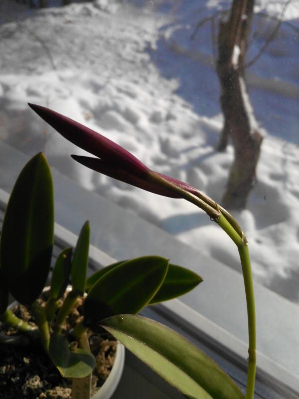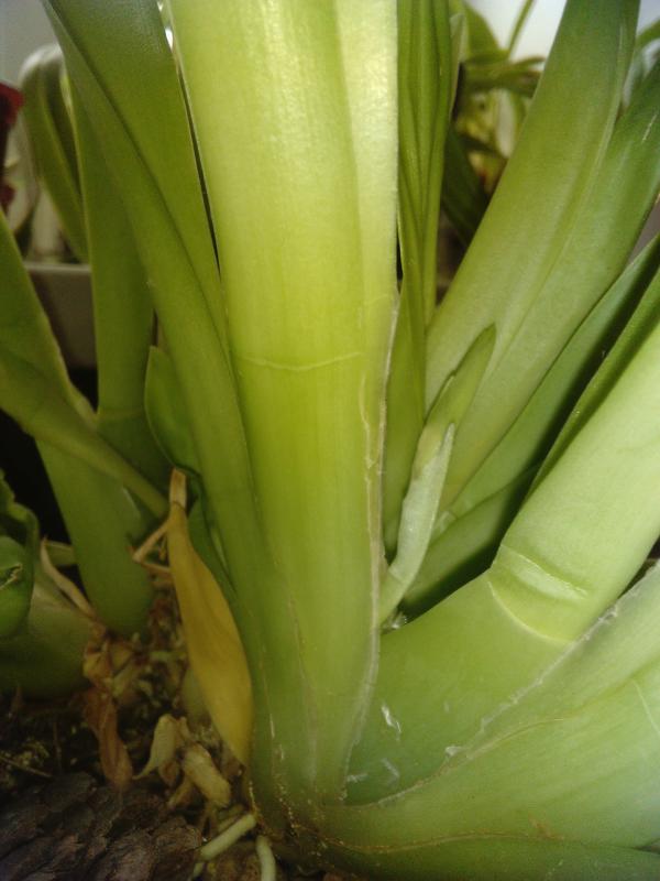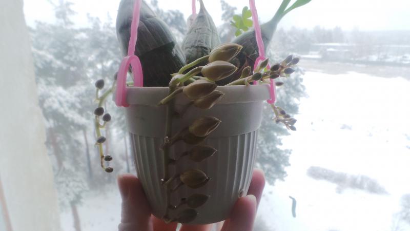Trichopilia laxa. Ожидается второе цветение с одной и той же бульбы. На фото виден пень от прошлогоднего цветоноса.