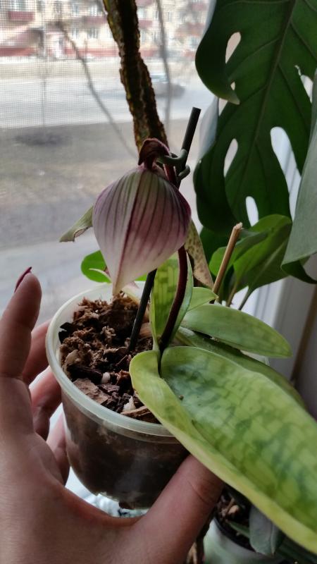 Cymb. Magic Vogel вчера начал роспуск, так интересно наблюдать как меняются бутоны, утром чуть открылись, к вечеру уже четко видны пятнышки, цвет пока не набрал! К сожалению цветение пышным не получится, но все равно радость))))