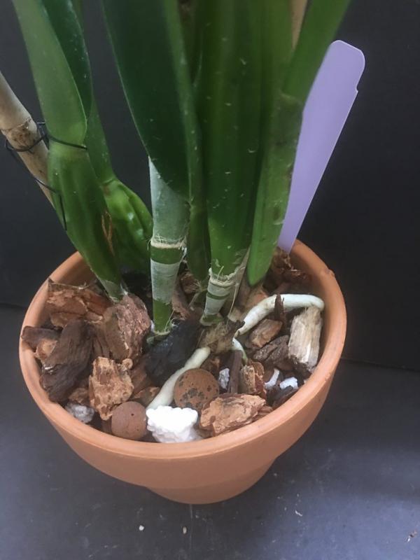 Не в середину, а внутрь горшка, между этими корой, пенопластом и углем... Писалось, что другие каттлеи тоже оценили такой субстрат.