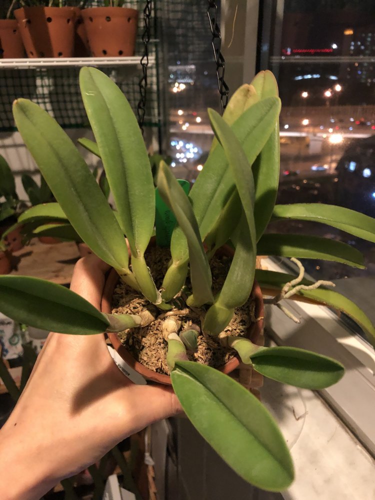 Вот Digbyana.У меня 1,5 года,пришла взрослая,цветшая.За зиму вырастила две бульбы толстенные,даже треснули,на том и всё.Стояла под лампой(самое лучшее освещение отдавала ей),вплотную к окну.