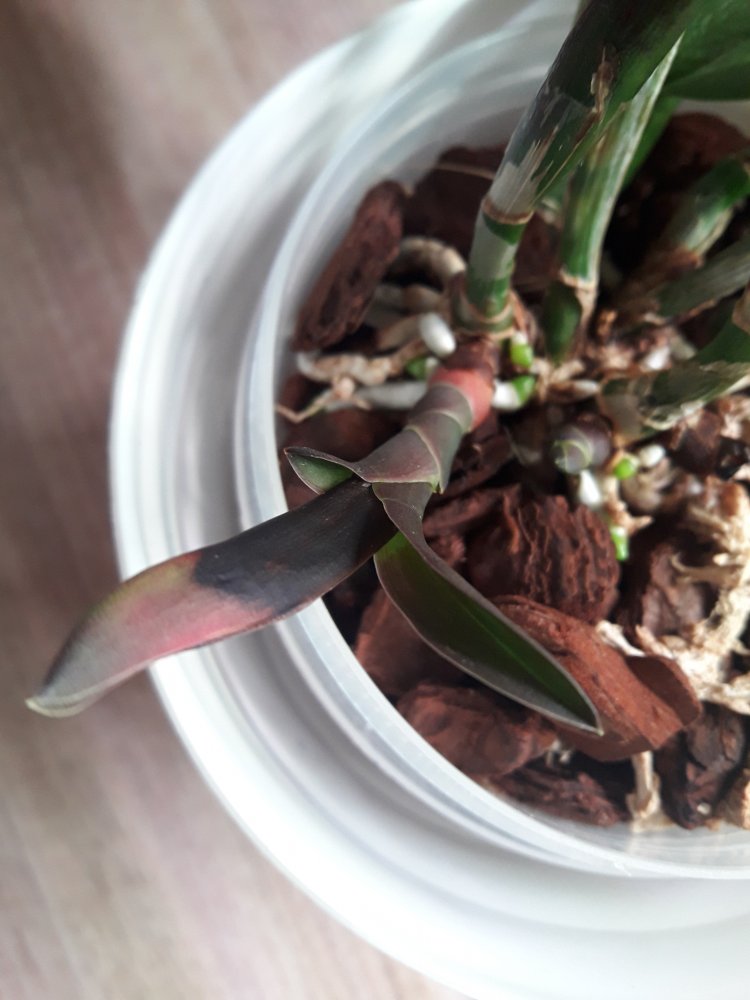 у меня было такое с энциклиями, одной каттлеей и парой морковок, у молодых ростов чернел центральный лист, и ничего не помогало... как ни боролась.. увы