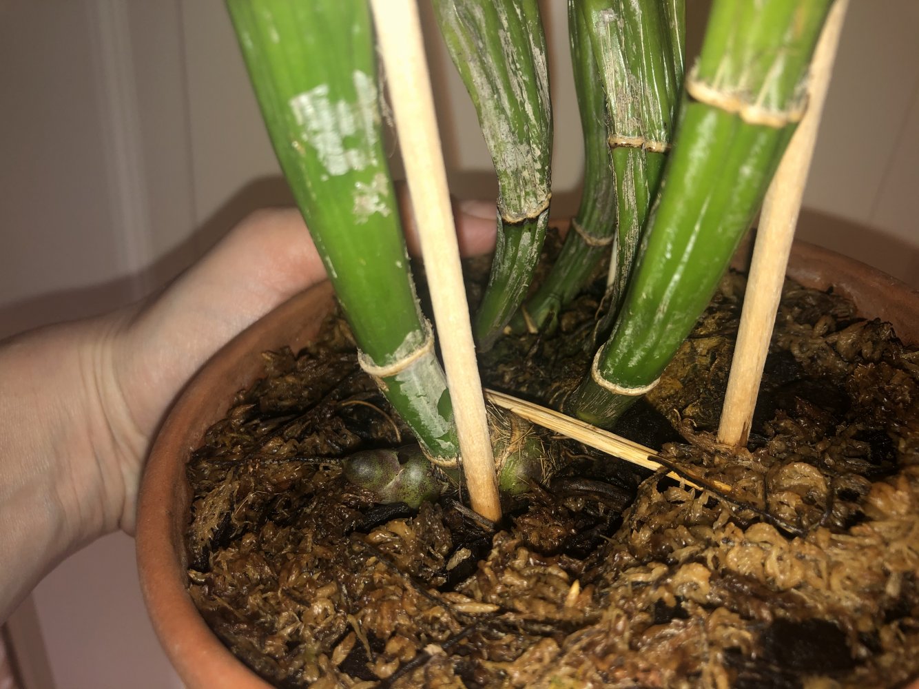 У нее меньше закидонов, чем у Майомбо. Она более южная, климат более мягкий, нет суровых сухих периодов, всё как бы плавнее, легче.Если это южная каттлея, то логично предположить, что она любит яркое солнце с менее выраженными суточно-сезонными перепадами (то бишь, не нуждается в резких температурных колебаниях в сутках и соотвественно серьезного понижения температуры зимой). Посадка в крупную или среднюю кору, чтобы вода не застаивалась, ну и как для всех катек - досветка, когда солнца становится меньше. ну и удобрямсы соответствено состоянию вегетации: если дала почку - для стимуляции наращивания массы, когда начнет формироваться лист - для цветения и т.д.