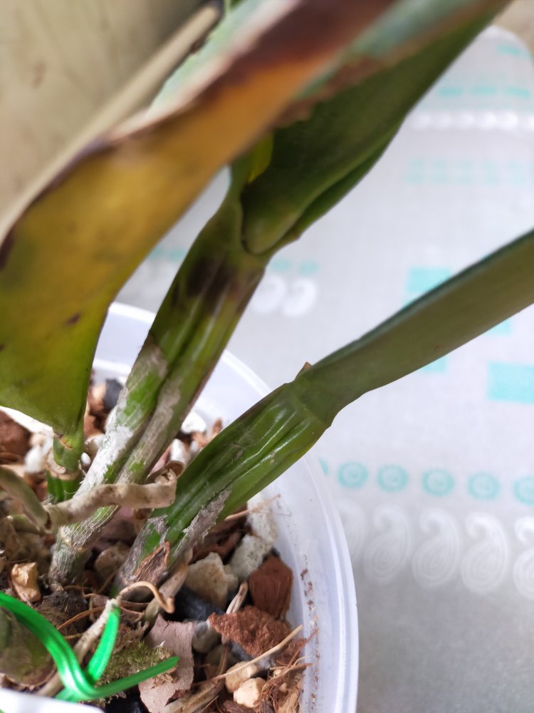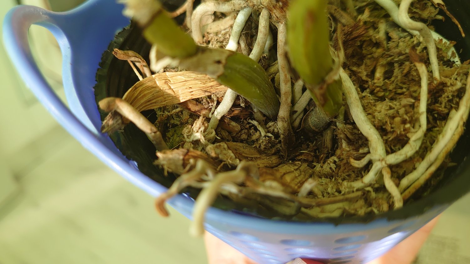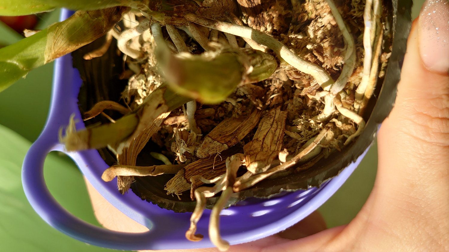 Наталья, спасибо Вам большое. Так и сделаю.@Lazuriya, вот теперь хорошо видно - да, это загар)). На соседней бульбе, небольшое пятнышко - не загар, но не опасно выглядит, просто замажьте его Макисмом. Знаете, я бы, ее все таки, сейчас пересадила. Она в хорошем состоянии - тургор отличный, много здоровых налитых бульб, корней молодых много... Зато задняя часть полностью отмерла, и может загнивать начать. В ее случае пришло время пересаживать, иначе вреда от оставления ее все как есть будет больше. Старую отмершую часть надо убрать полностью с корнями до молодой и здоровой части, при пересадке срез обязательно обработать, хотя бы замазать зеленкой или Топуджином. Будете пересаживать, не замачивайте ее, сухую вынимайте и убирайте аккуратно мох. Который сильно к корням прирос, не отдирайте, оставляйте. В одной коре она будет тяжело адаптироваться после пересадки. В таких случаях сажаю в кору с серамисом или кору с родным мхом поверху. Но в Вашем случае этот мох не стала бы использовать, там слишком продуктов гниения много. Так что предлагаю ее сейчас пересадить в новый горшок такого же диаметра, но новый, в кору с серамисом или в одну кору (среднюю) и сверху новый мох, немного, сантиметра поверх хватит. Дальше будете наблюдать - если поцдет где то загнивание - покажиье ее сразу, не тяните. Если будет все хорошо, она начнет потихоньку приживаться. А в адальнейшем ее можно будет просто перевалить на ПМЖ в горшок побольше.