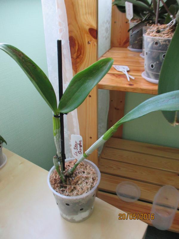 Tatii, у меня тоже Стар Гарден от Юченга, поставка - декабрь 2015. Но она рост уже вырастила, правда листья у этого молодого роста уже изнутри черными шли. Но мне кажется, этот сорт довольно шустрый. А вот такие пятна - у меня есть тоже на каттлеях, новые нормальные растут.