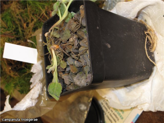 Единственное плохо доехавшее растение это колокольчик на первой фотке. Хотя из дренажных отвестий видны очень хорошие белые корни, стебли сгнили, может что и пойдет... Но наверное такие растения надо осенью заказывать.