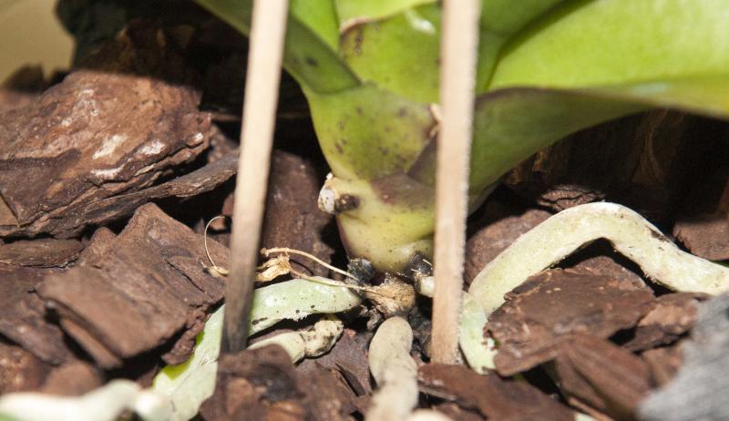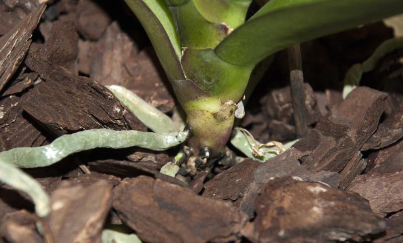 Сегодня на одном фаленопсисе обнаружила странную картину: корни вроде бы нормальные, но у основания черные перетяжки у всех корней, которые видно.