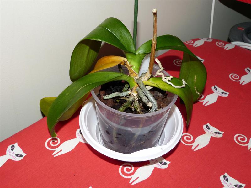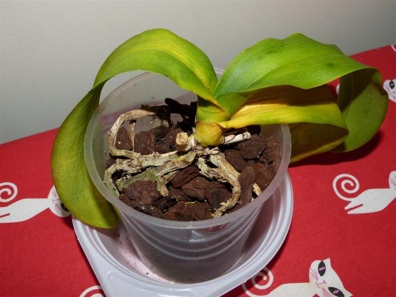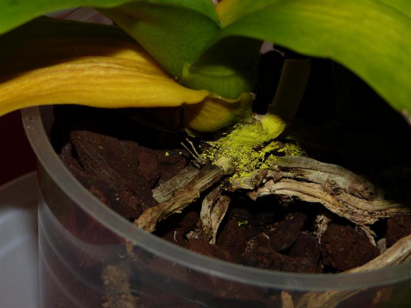 Вторая - пришла с подгнившими корнями. Замочила корни в фундазоле. очистила от гнилого веламена, посадила в орхиату с углем. Не поливала. Тоже начали желтеть листочки в середине куста. Отвалилось два, третий на подходе. Вопрос тот же - что это, и как бороться?