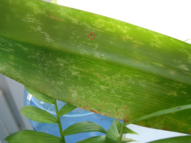 На второй орхидее верхний лист как будто клещём поражён.