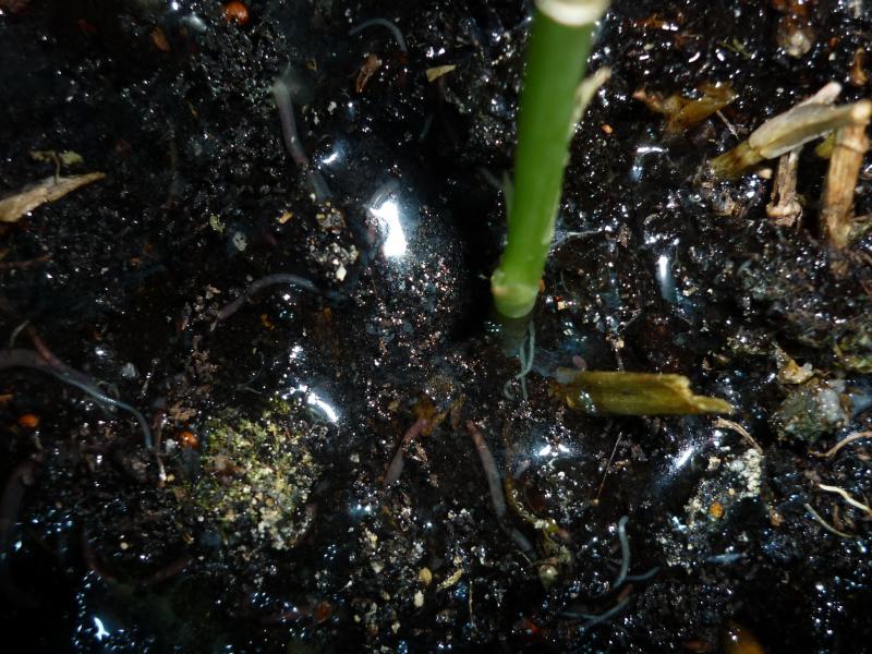 Ой ей я бы всеже пересадила его одного и ещё попробуйте марганцовкой полить, и ловите, они должны выползать на ружу когда обильно поливают , когда очень сыро им дышать трудно и они выбираются на поверхность, ещё можно выманивать ритмичными постукиваниями с низу горшка медленно медленно поднимаясь в верх. На заметку есть даже такие соренования по ловле червей , где то в Европе , втыкают грабли , лопаты и ещё что то и стучат по ним. А черви выползают.