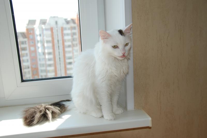 Я заметила, да и не только я, что белые кошки часто имеют вредный характер, особенно лохматые. И часто бывают аллергиками. Наблюдала картину в ветеринарке, когда белую кошку привезли с жуткой аллергией, ей и надо-то было укол поставить... Врач и владелец стоят в коридоре, а за стеклянной дверью ходит кош издавая жуткие звуки и периодически попрыгивая на дверь :) Потом владелец быстро заходит, хватает кошку, а врач налету колет укол....