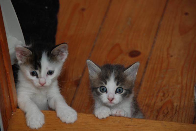 Котенок справа прямо умняшка,, такая смышленая мордень