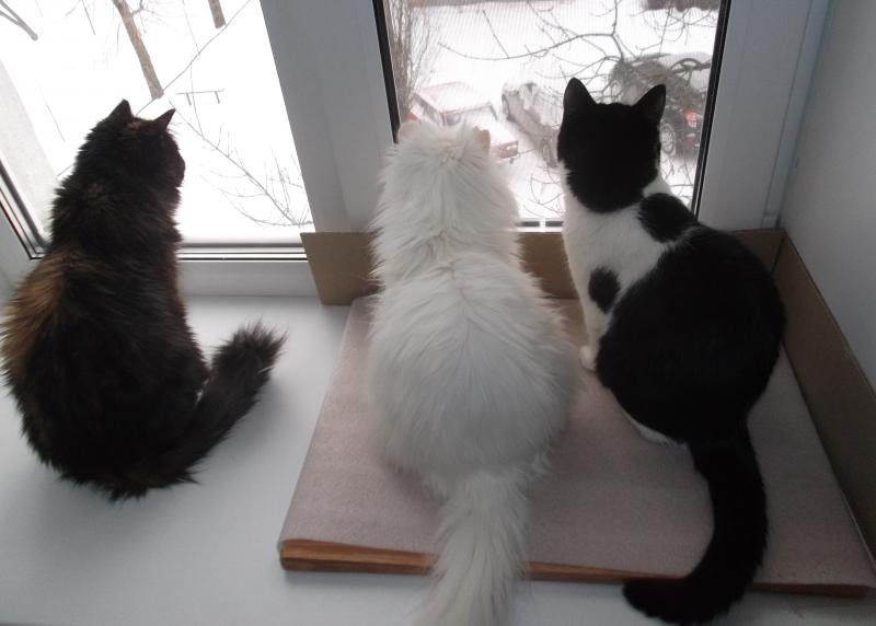 Lila, Спасибо, они очень классные и очень дружные! Я их обожаю! :girl_in_love: И как-то уселись в этот момент на подоконнике в порядке возраста: С права налево сидит самая старшая у нас кошка Муся (13 лет) , рядом - её подружка Кроша (4 года), и третий - найденыш Лёлик (7 мес).