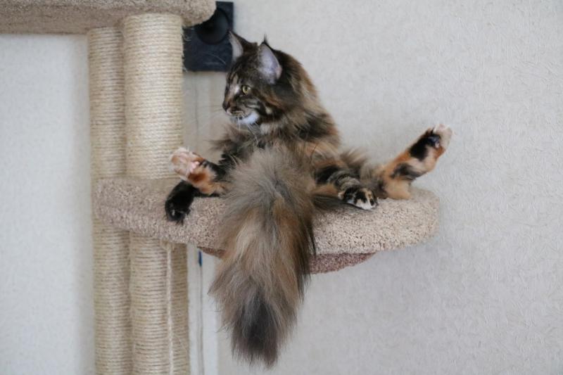 Мейн куны очень любят свои игрушки любимые "купать" в поилке, интересно кушают с лапы.
