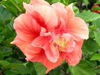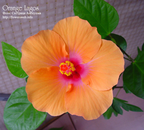Гибискус оранжевого цвета с бордовой серединой, простой цветок среднего размера 7-10см. Компактный куст, некрупные темно-зеленые листья. Цветение обильное с ранней весны до поздней осени. Один из любимых неприхотливых сортов!