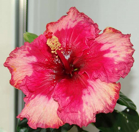 Ярко-розовый сорт с бледно-розовыми пятнами по краю лепестков и ярко-красной блестящей серединкой. Крупный 16-18см цветок с плотными лепестками. Мощный кустарник с огромными листьями. Сорт любит больше прохладу, чем жару. Нетерпимо относится к засушиванию земляного кома. Позднее нечастое цветение, достаточно неприхотлив.