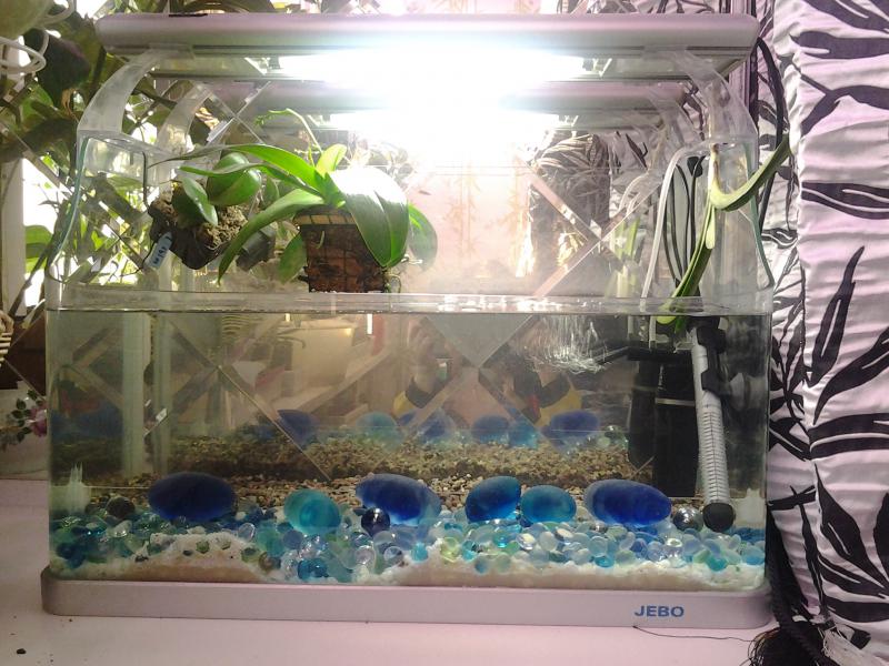 Охохонюшки...неохота то как корягой самой заниматься, надеюсь готовую акваэлевскую найти...Кстати, у меня тут тоже фильтр вполне "лоховский", но раньше такой же очень неплохо тянул. Вода у меня из фильтра обратного осмоса, поэтому наконец решилась проблема с осадками солей на краях и орхам такая вода нравится. Вот еще засада, какого петуха выбрать -все красивые они заразы, а посадить можно только одного:girl_expect:у меня когда то бирюзовый петух жил, так он вылезал на поверхность листа эхинодоруса и спал-грелся там в лужице под лампой. Посмотришь -дрыхнет как в кровати, ноначеку...чуть вибрация, сразу в воду.