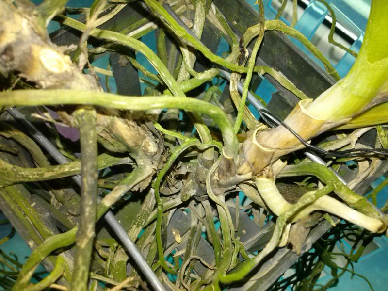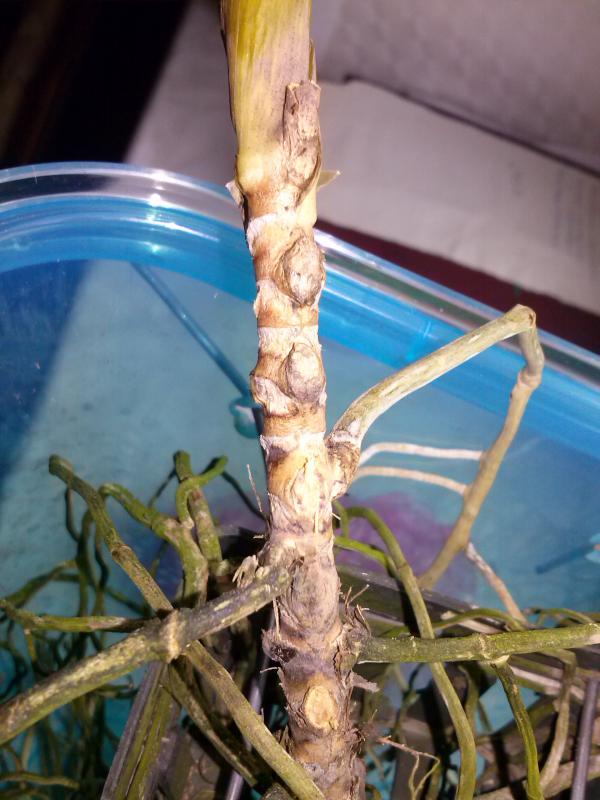 А нет,мамке кирдык!CAM00366[1].jpgCAM00367[1].jpgCAM00368[1].jpgХотя заметила у неё цветонос лезет!А корние чем то зеленым покрыты.