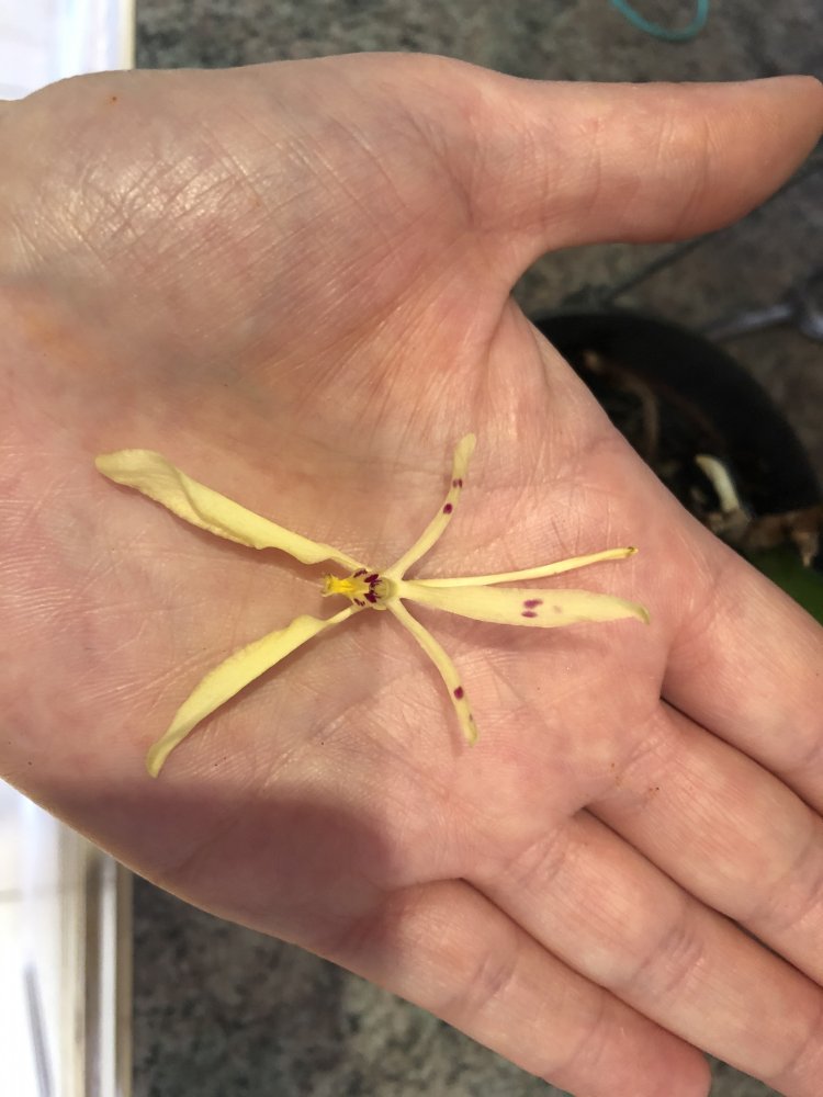 Начинает отцветать Ренантера.Сегодня на полу обнаружила цветок,который раскрылся первым 1 апреля.