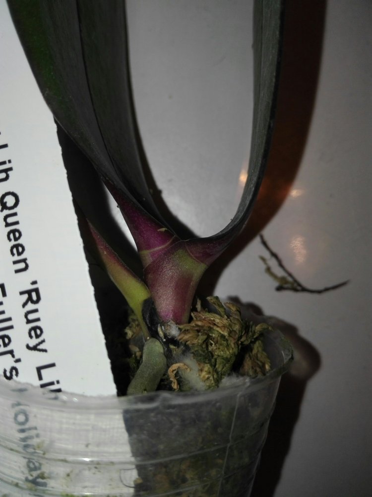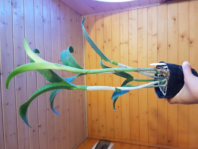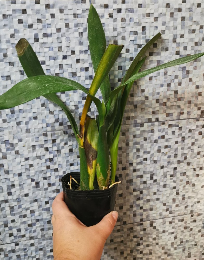 Blc. Chia Lin New City JGP 96 (Oconee x Maitland), единственная была в коре, хотя корней живых там и не видно, крупная растень в 7 бульб, половила листов треснуты по центральной линии, не цвело