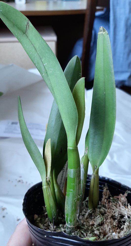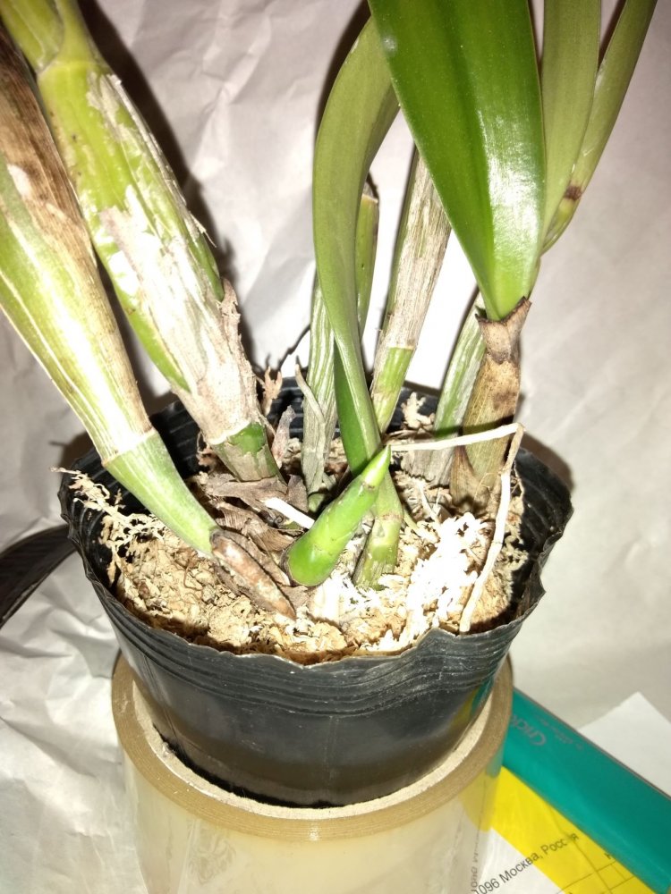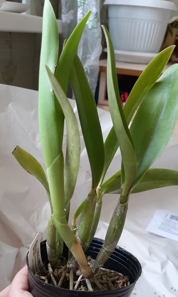 Lc. Love Knot Sato (L. sincorana x C. walkeriana) упитанное растение в 6 бульб, не цвело, часть корней жива, немного пятен на листьях, но в целом выглядит вполне здоровым,было во мху забыла сделать фото до пересадки