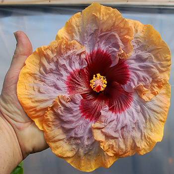 OK Corral. Размер цветка: 17,5см - 22,5см. Родители: "Rainbow Sherbet" х " Hot Pepper"
