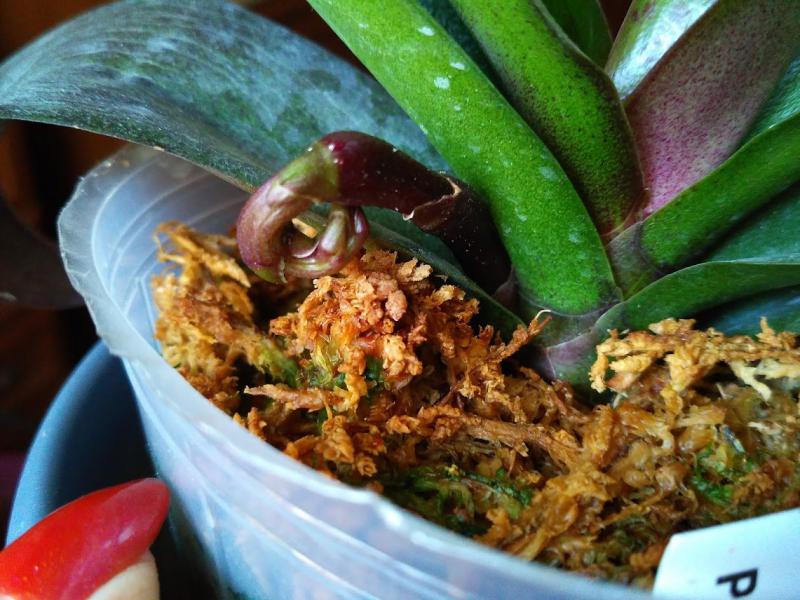 SPhotoEditor-20180411_174216.jpg Вот другой дохляк, корни спрели во мхе, жесткие корни не обрезала, засунула вот так, тургор листьев стал чуть лучше, был вообще вареной "тряпочкой", пошел новый лист и пипку зеленую видно, это уже корень пошел