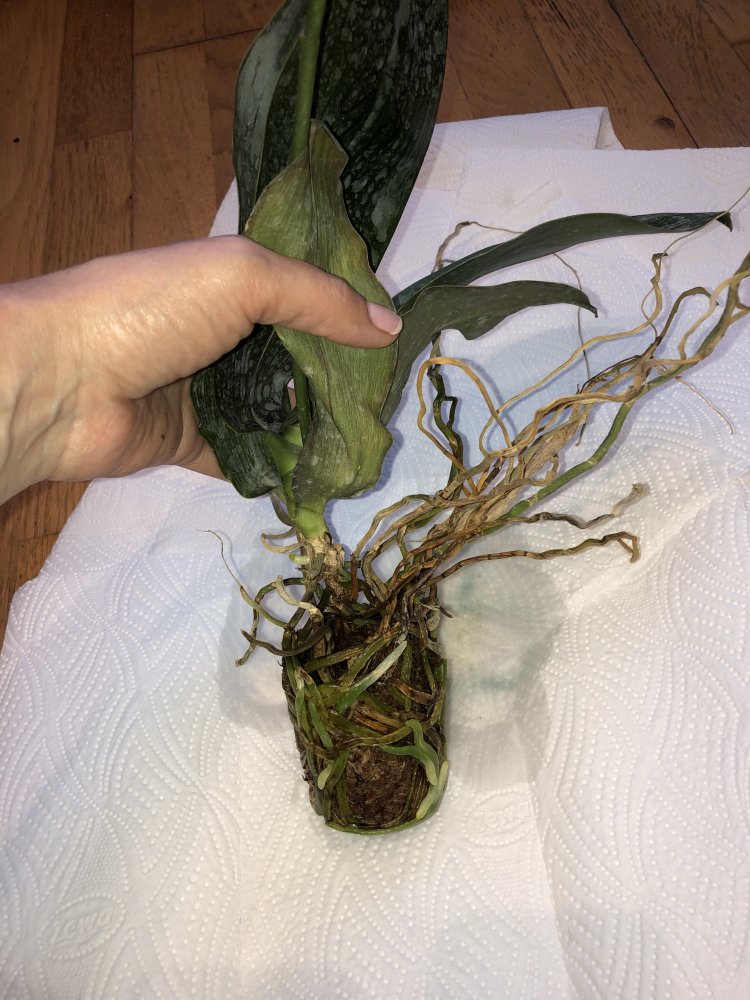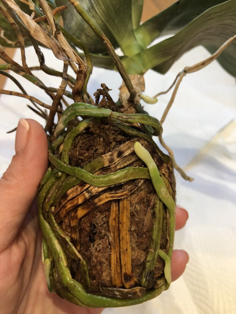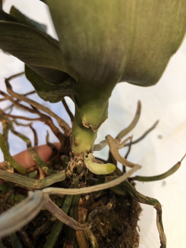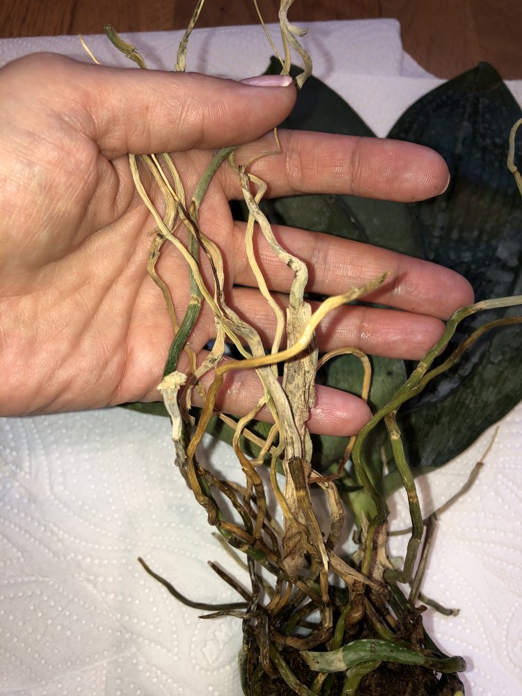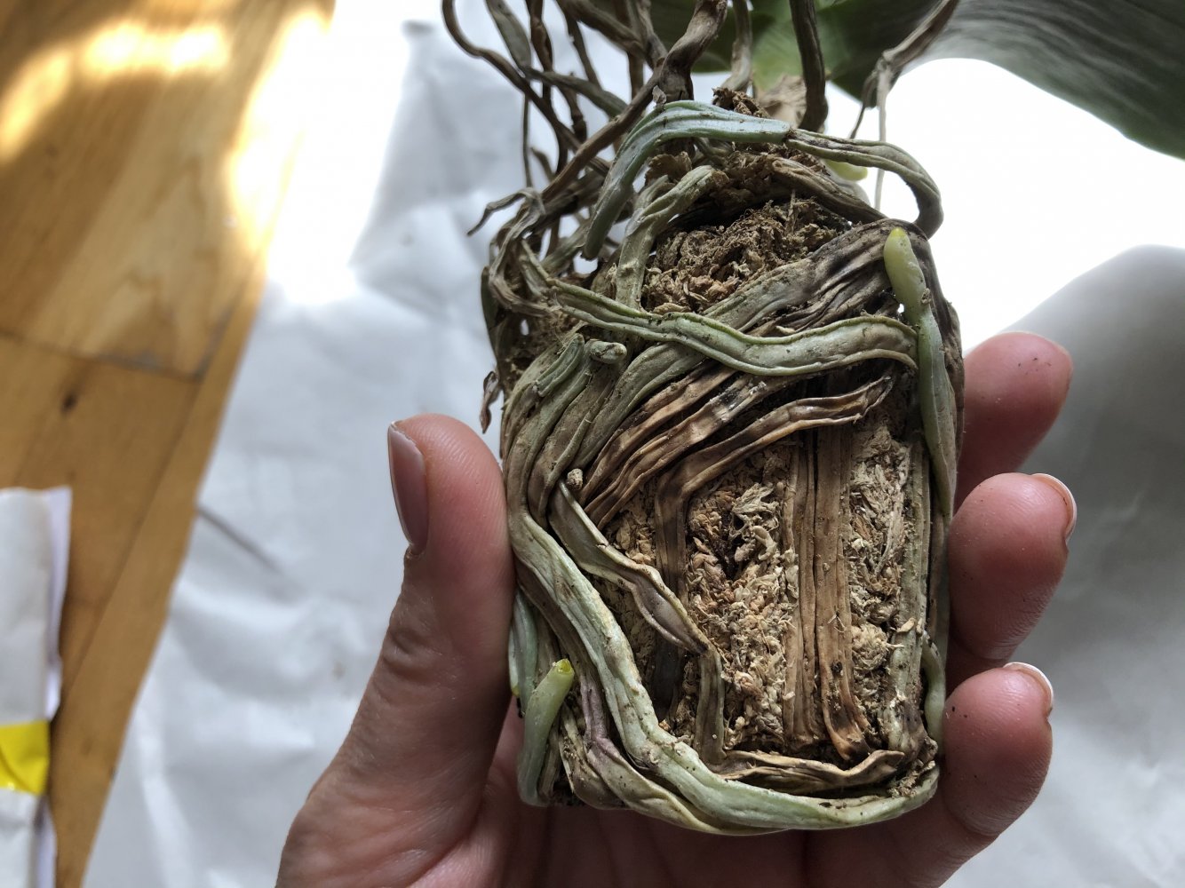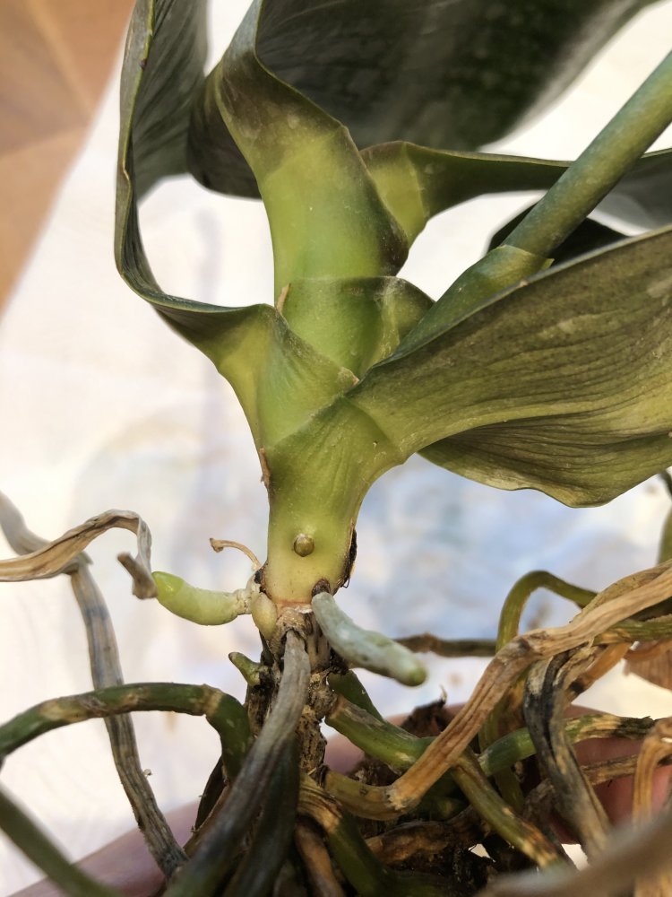 У него корни целы, гнили нет, ризома жива и активна судя по здоровому корню.