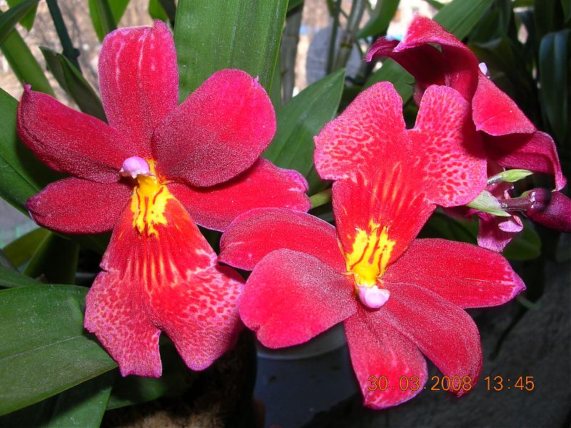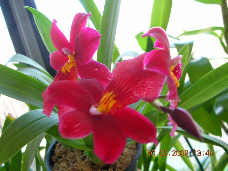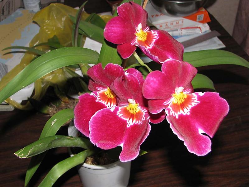 И у меня кое-что цветет. Вот: мильтония, привезенная в прошлом году контрабандой из Голландии (первое домашнее цветение), обычный фалик (но обаятельно пятнистый) из ОБИ и самое главное - наконец-то зацвел Доритенопсис леопард принц из прошлогоднего Тайваня! :)