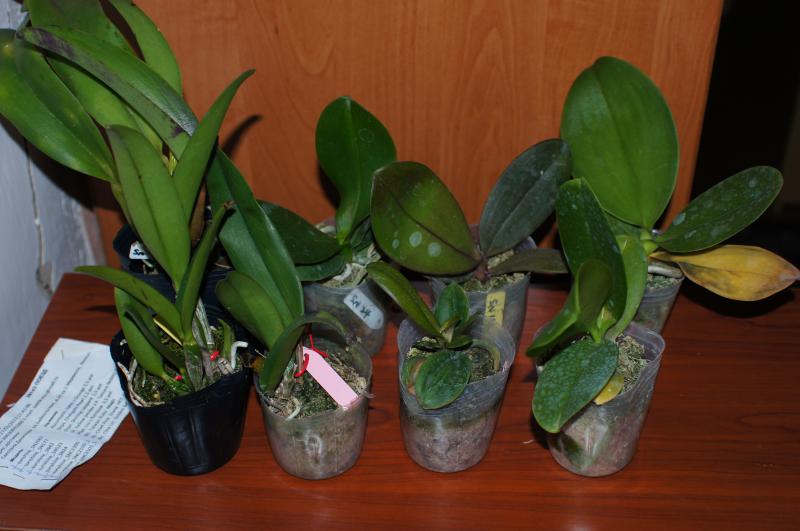 P.Natasha Aiko - маленький подросточек, как у всех P.(Gelblieber x mariae) (Fragrance) - крепкий подросток, крупнее Наташи Dtps.Zheng Min Parakeet Peter - в наперсточке, цветущий, но цветочки завяли. Фото есть в "Фотографии получаемых Орхидей Shining" Wils. Dianne Feinstein Red Ruby - 3 бульбы, цветущая, но цветочки завяли. Фото есть в "Фотографии получаемых Орхидей Shining"