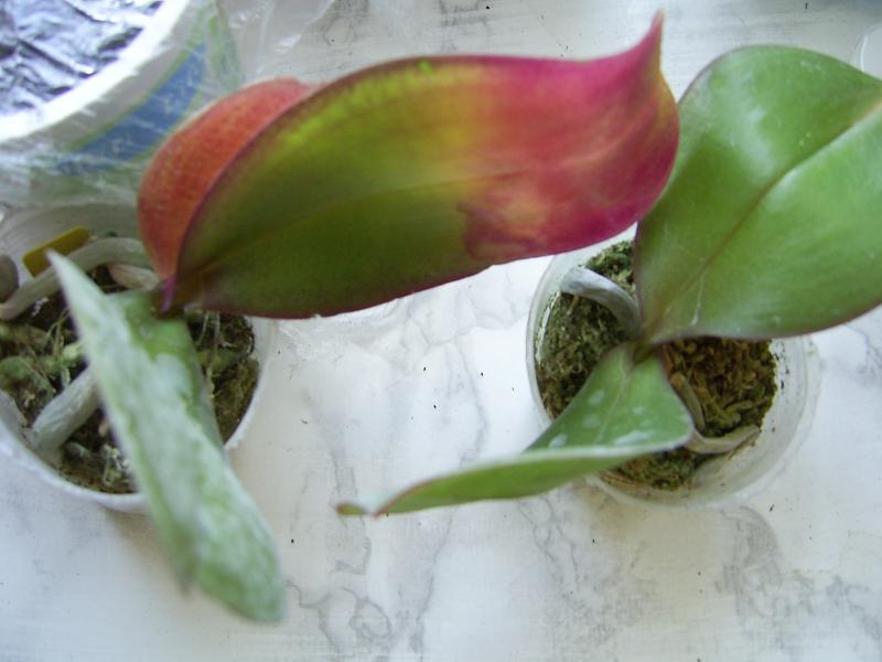 у меня в январе кажется пришел досыл Phal. Red Lightning 1,7 и нижний лист тоже был такой красный, отвалился потом и все. Растение живо-здорово сейчас, правда до цветения как до луны... может путаю чего, но я бы такое покраснение отрезала...Будет очень жаль...
