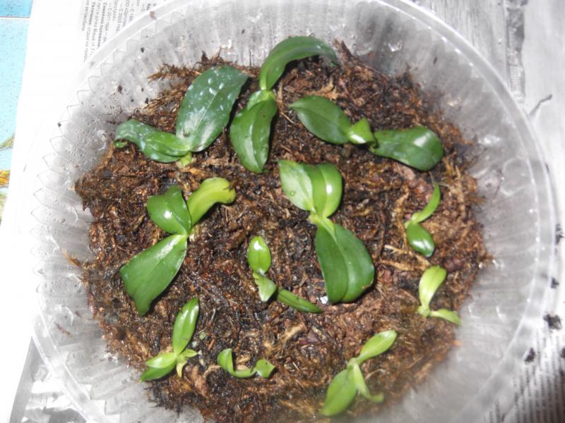 Я не стала-бы бить сейчас колбу. Снимите с горлышка полиэтилен и поставьте колбу в обычные условия, где растут Ваши фаленопсисы. Свет не должен быть очень яркий и банка не должна нагреваться от солнца. Сеянцы( по идее) могут расти в банке, пока не закончится еда(гель). У некоторых зарубежных заводчиков они даже цветут в банках (сейчас я не про фаленопсисы). Банку надо вскрывать, если листья начнут портиться( намек на гниль). А вообщем, чем дольше они будут расти во фласке, тем лучше адаптируются потом. Еще раз хочу напомнить, что необходимо снять с крышки целлофан. Растения должны дышать через мембрану в крышке.