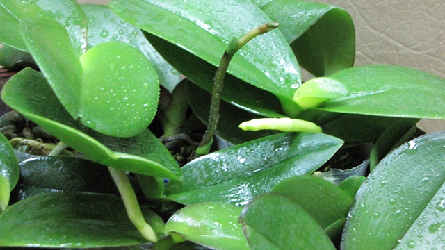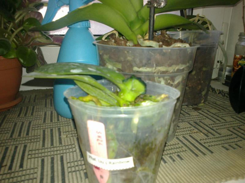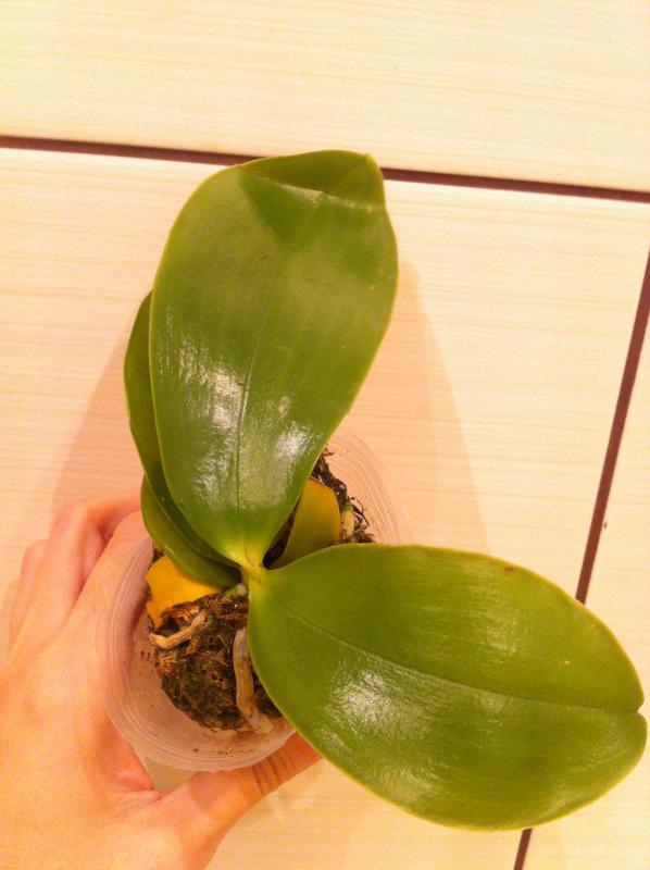 P.Buena Jewel x P.Penang Girl, отличный фаленопсис с цветоносом, самый нижний лист немного сопрел, в пятнах, завтра при пересадке удалю, в середине