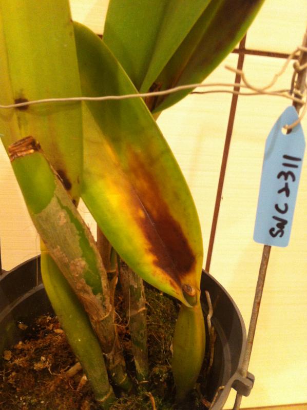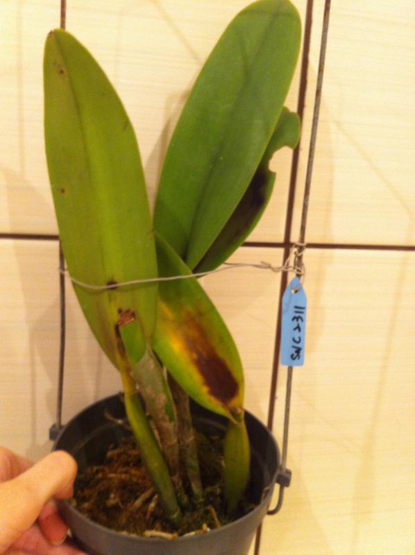 P.pulchra, небольшой подросток и уже с цветоносом, мазнула фундазолом пятно на листе, и крайняя справа